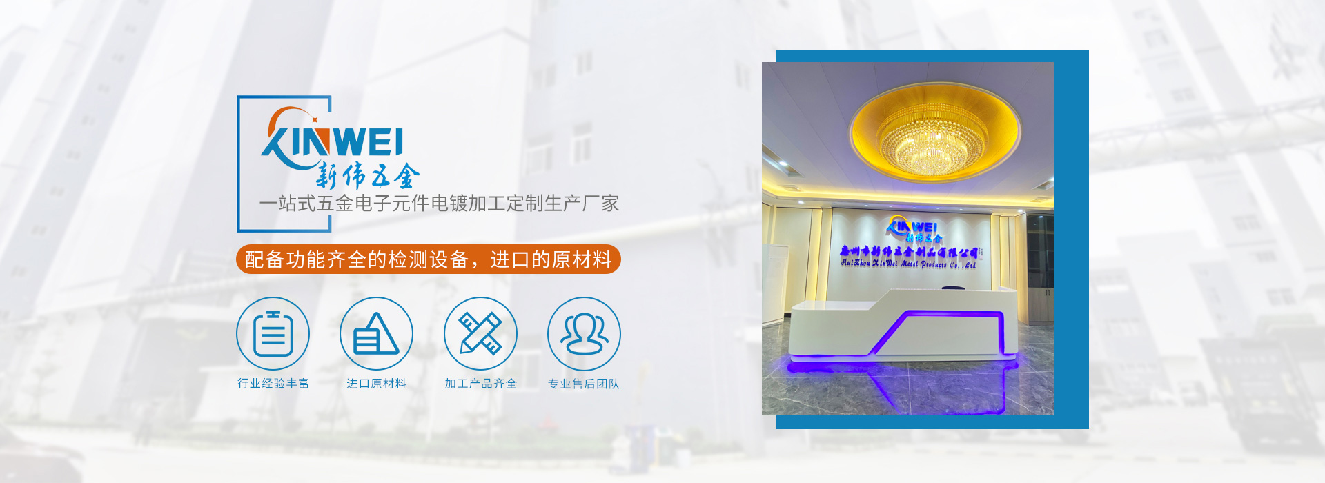 惠州市新偉五金制品有限公司(簡(jiǎn)稱(chēng):新偉五金)坐落于中國(guó)廣東省惠州市,成立于2010年,是一家專(zhuān)業(yè)電鍍各種高品質(zhì)功能性的環(huán)保五金電子元件供應(yīng)商,公司已通過(guò)ISO9001:2015及IATF16949:2016質(zhì)量體系認(rèn)證。客戶(hù)至上,品質(zhì)至上,承蒙新老客戶(hù)的信賴(lài),公司發(fā)展迅速,廠(chǎng)房車(chē)間面積10000平方米,現(xiàn)有員工200名,并擁有一批從事電鍍行業(yè)10年以上、經(jīng)驗(yàn)豐富的技術(shù)骨干,為客戶(hù)解決許多疑難問(wèn)題,另有一支品質(zhì)工程小組,專(zhuān)業(yè)檢測(cè)產(chǎn)品品質(zhì),杜絕不良品外流,深受客戶(hù)好評(píng)。